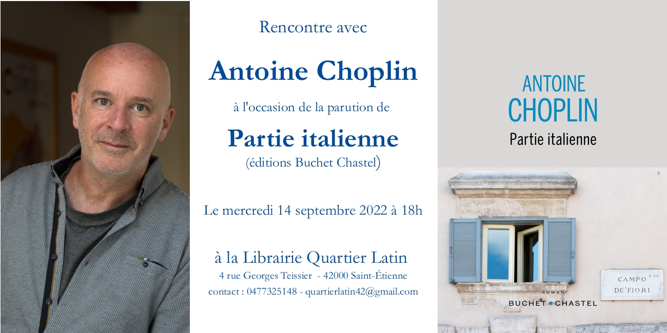Rencontre avec Antoine Choplin / « Partie Italienne » (Buchet-Chastel)