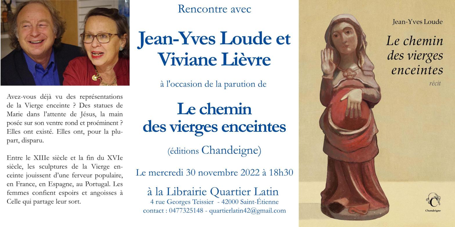 La librairie vous invite le mercredi 30 novembre à partir de 18h30 à une rencontre avec Viviane Lièvre et Jean-Yves Loude à l’occasion de la parution de l’ouvrage « Le chemin des vierges enceintes » aux éditions Chandeigne. → Présentation de l’éditeur : Avez-vous déjà vu des représentations de la Vierge enceinte ? Des statues de MarieLire la suite « Rencontre avec Viviane Lièvre et Jean-Yves Loude / Le chemin des vierges enceintes (Chandeigne)«