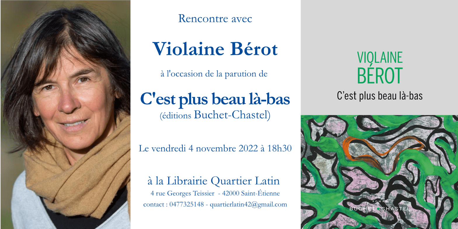 La librairie Quartier latin vous invite le vendredi 04 novembre 2022 à partir de 18h30 à une rencontre avec Violaine Bérot à l’occasion de la parution de son nouveau roman, « C’est plus beau là-bas », aux Éditions Buchet-Chastel. → Le coup de cœur de Magali :Un roman déroutant en forme de monologue intérieur. Le narrateur, unLire la suite « Rencontre avec Violaine Bérot // « C’est plus beau là-bas » (Buchet-Chastel)«